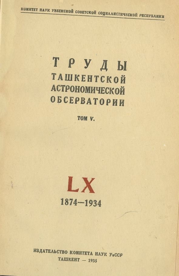 Труды Ташкентской астрономической обсерватории, 1935 год История