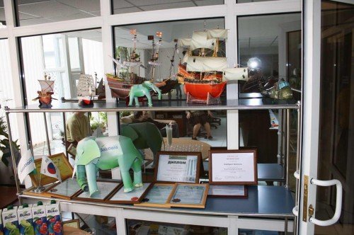 Эти бумажные слоны — многолетний символ компании на каждой выставке… хотя на сентябрьской они поменяли их на орла…