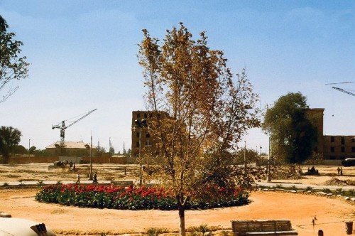 Примечание ЕС. Интересно, что задумки архитекторов по отведению широких проспектов от площади так и не воплотитлись, ни в центр (так и усталась убогая узкая Педагогическая) ни в сторону Чиланзара — так и петляет 11 троллейбус по лабиринтам махаллей… а жаль… Проспект широкий, выходящий к Пионерской, был бы очень кстати…