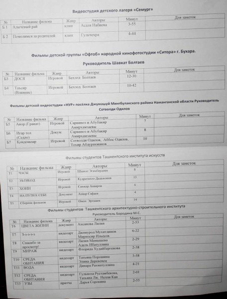 Сегодня в Центре молодежных инициатив «Камалот» открылся фестиваль, идет просмотр фильмов. Номинированы 50 фильмов, жюри ведет работу по выявлению призеров. Многие фильмы скоро будут доступны на http://uTube.uz.