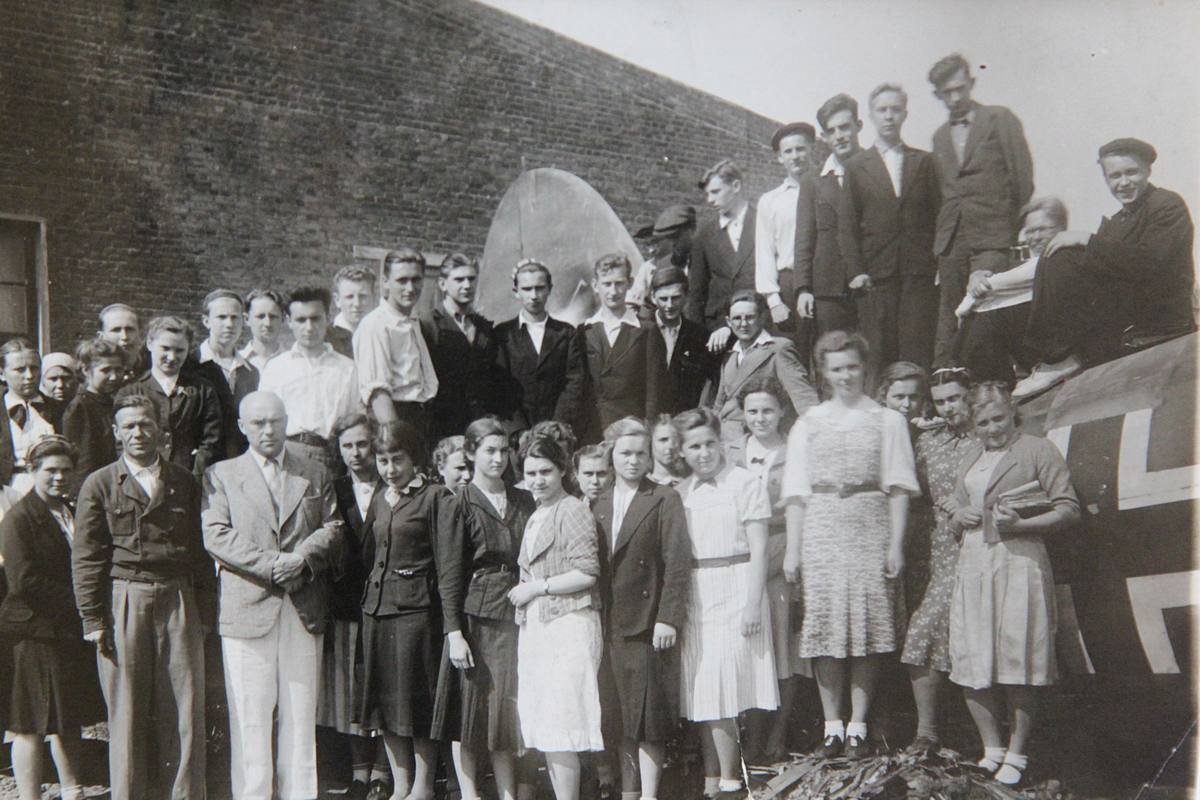 Среди посетителей музея Дважды Герой Советского Союза Б. В. Волынов. Справа, второй, сидит Н. А. Урюпин.