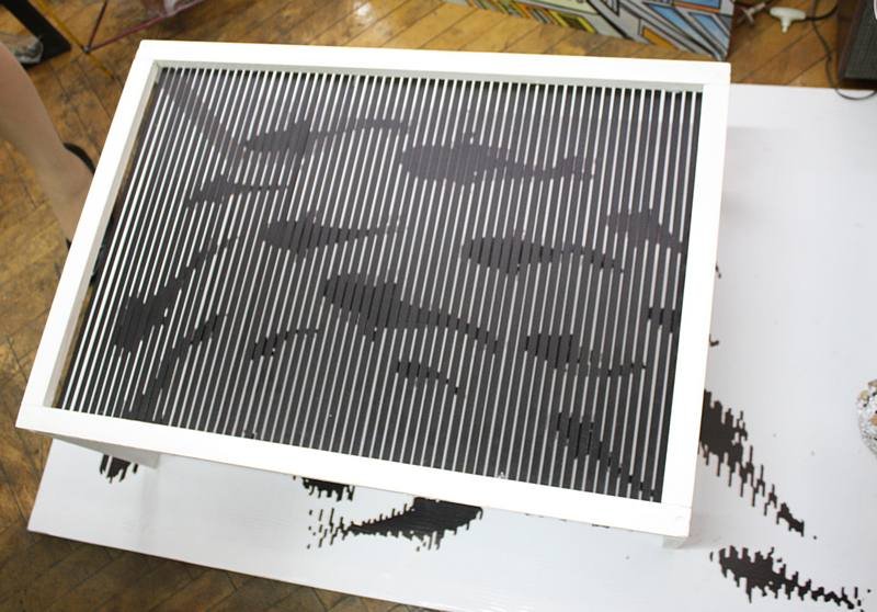 Это лишь малая часть всяких фантастических штук. Лист бумаги с прорезями вдруг превращается в объемную крышу стадиона, есть плоско-объемный прикольный кот, бесконечные поделки, абажуры, застывшие водопады, батик, ширмы, коряги, поверхности линейчатые, все рабочее и живое…
