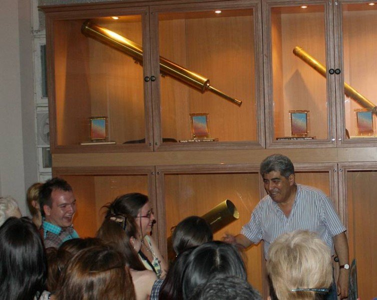 Потом пошли в старую башню с французским телескопом, построенную в 1894 году Сваричевским. Доктор наук, профессор Туракулов рассказывает удивительные вещи о развитии науки.