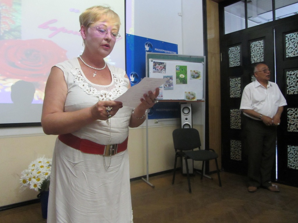 Дорогая Светлана, спасибо тебе за освещение этого замечательного праздника «День семьи, любви и верности», который прошел согласно сложившейся традиции в ЛТО «ДАНКО» легко и просто, благодаря содействию представительства Россотрудничества. Все остались очень довольны, расходиться не хотелось (выступающих данковцев было 13 человек). Это было последнее мероприятие ЛТО «Данко» на летний период, т. к. официально мы на летних каникулах. Все могут спокойно отдохнуть, сделать то, что необходимо в своих семьях — ВСЕМ ДАНКОВЦАМ ОГРОМНОЕ СПАСИБО ЗА АКТИВНОЕ УЧАСТИЕ В ЖИЗНИ И РАБОТЕ КОЛЛЕКТИВА, КОТОРЫЙ ПОПОЛНИЛСЯ НОВЫМИ ЛЮБИТЕЛЯМИ ПОЭЗИИ, ЛИТЕРАТУРЫ, ИСКУССТВА. С сеньября начнется новый, не менее интересный период нашей творческой жизни в ЛТО, как обычно 1 и 3 среда месяца в 17 00 для общих заседаний а музее С. Юдакова, индивидуальные вечера — презентации поэтов и концертные программы в лучших аудиториях города.