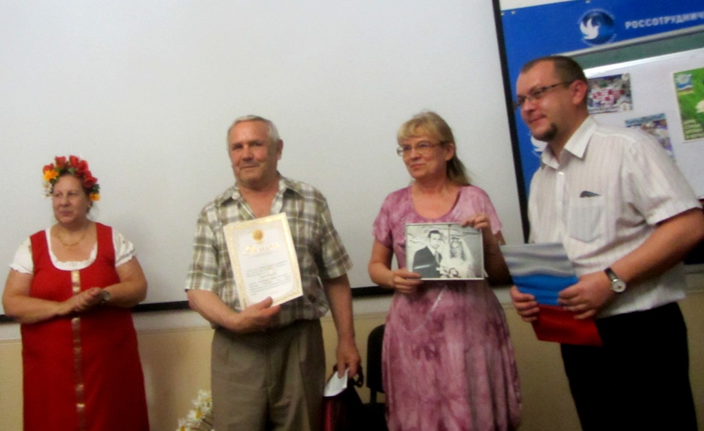 Из молодежи были фотографы, молодая журналистка Парвина («Новый век»)- они ушли, не фотографируясь. Из данковцев — Артур. Он очень удивился: «Надо же, мне еще сорока лет нет, а Вы уже сорок лет со дня свадьбы отмечаете!» Зал небольшой, приглашали в основном семейных со стажем. В Епархии было значительно больше людей на праздновании дня семьи, любви и верности: http://danko-svetla.blogspot.com/2013/07/blog-post_8.html Там было много молодежи. И чествовали семь семейных пар со стажем больше 30 лет.