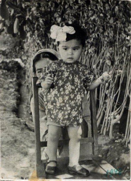 Это я, Мастура, мне 1 годик. За спиной мама. Я прыгала и мама меня схватила сзади за платье, я застыла.