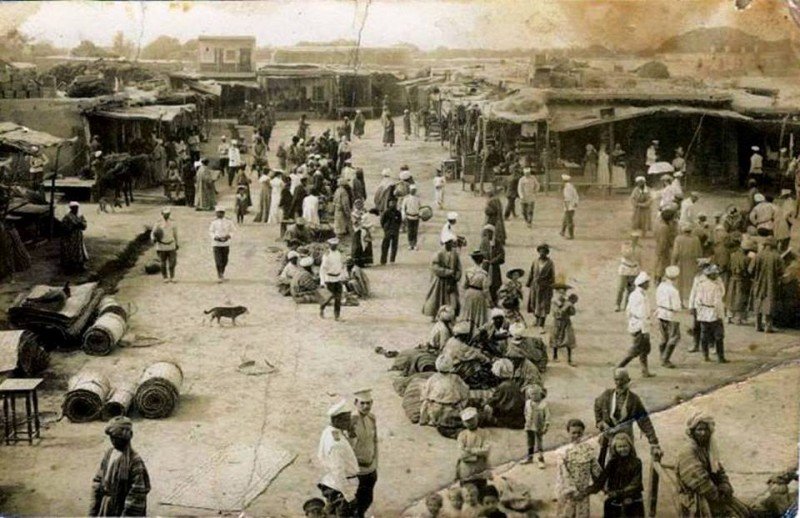 Круто. Вдали 2-х этажка тоже с тех времен. Наверное там тоже, как и сейчас продавали молочные продукты, красную икру и прочие деликатесы. Справа дымит шашлык, как и 120 лет назад)