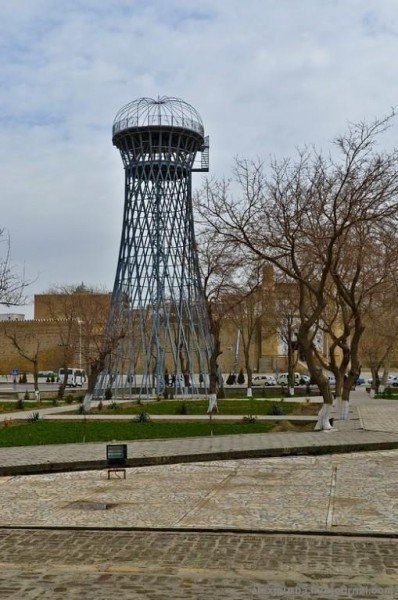 Водонапорная башня системы Шухова расположена по соседству с цитаделью Арк, что в городе Бухара (Узбекистан). В 1920 г. в Бухаре было начато строительство водопровода, известного теперь как Старо-Бухарский водоканал. Частью этой системы водоснабжения и стала заложенная в 1927 г. водонапорная башня по проекту Шухова. Строительство водокачки в Бухаре было завершено в 1929 г., а уже в начале следующего года в городе начал работать первый городской водопровод. Долгие годы эта водонапорная башня верой и правдой служила водопроводу Бухары, пока в 1975 г. в результате пожара не сгорела ее деревянная обшивка, а водяной резервуар не покоробился. После этого башня перестала эксплуатироваться.