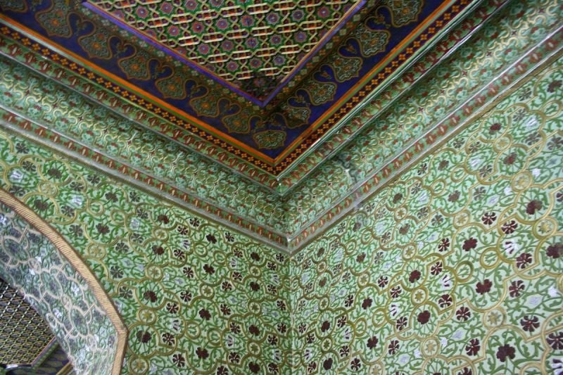 Летняя резиденция хивинских эмиров – Тозабог. Райский уголок хивинской элиты. Посетителей здесь встретят огромная арка раскидистого виноградника и тенистые шарики гужума, под которые не проходит ни один лучик солнца. Внутренняя отделка, действительно, достойна эмиров и ханов. Описание есть здесь meros.uz и несколько фотографий очевидца.