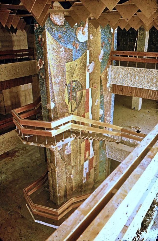 Мозаика на лестничном пилоне в вестибюле телецентра в Ташкенте, 1972 год Искусство История Старые фото