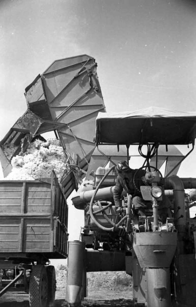 Машинная уборка хлопка в совхозе Гульбах, 1964 год Старые фото