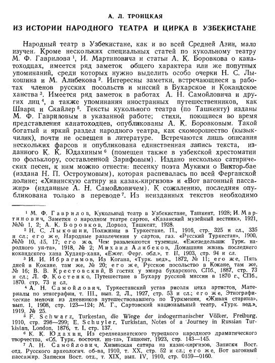 А. Л. Троицкая. Из истории народного театра и цирка в Узбекистане Искусство История