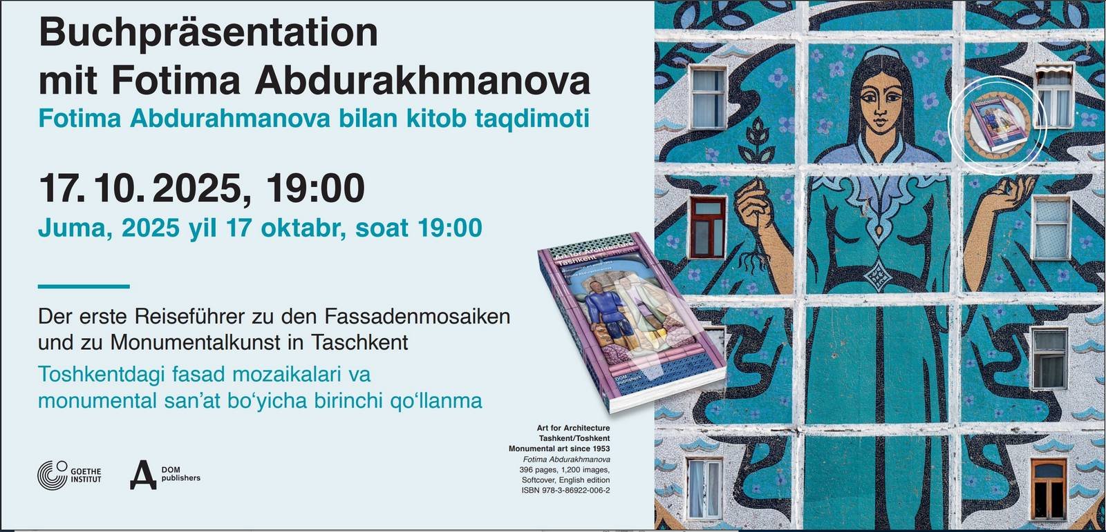 Важное приятное сообщение. 17 октября в 19:00 в институте Гёте состоится презентация книги Фотимы Абдурахмановой «Архитектура и монументальное искусство Ташкента».