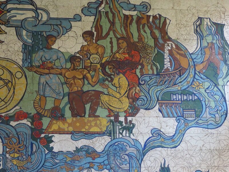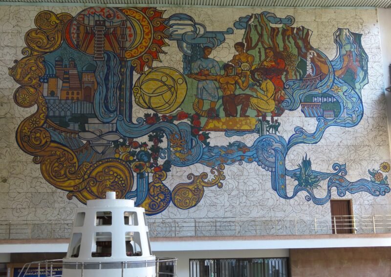 Созданное в 1970-е годы, это панно — воплощение духа советского модернизма, где инженерия и искусство сосуществовали в едином пространстве. Художники-монументалисты того времени стремились выразить оптимизм эпохи, веру в разум, труд и коллективное будущее.