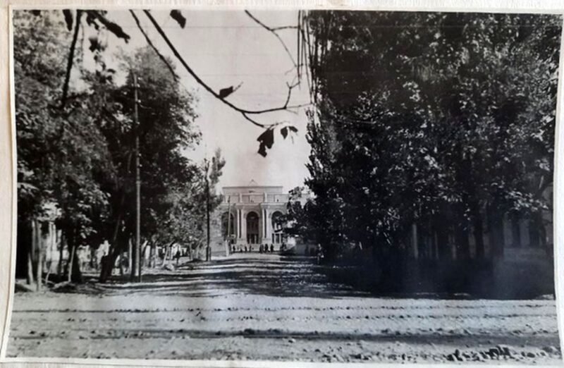 Фонтан у театра Навои. Ноябрь 1954 г. Театр справа, за кадром. Предыдущее фото ошибочно. Админы, если есть возможность — подправьте, удалите. Спасибо.
