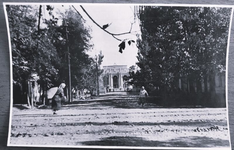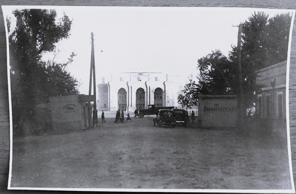 Но вот Неизвестный Фотограф решил взглянуть на театральное великолепие из старого Базарного переулка. И сразу в поле зрения попал небогатый ташкентский быт. Базарный переулок разрезал улицу Ленина, одну из лучших улиц Старого Ташкента. Вскоре он окажется «под пятой» гостиницы Ташкент. Справа от Фотографа ВОЕНТОРГ, слева тоже красивое торговое здание…