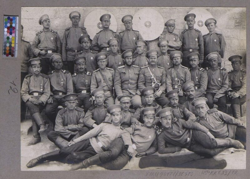 Солдаты и офицеры Кушкинской полевой железнодорожной роты на топографических съемках в Туркестане, 1908-1912 гг.