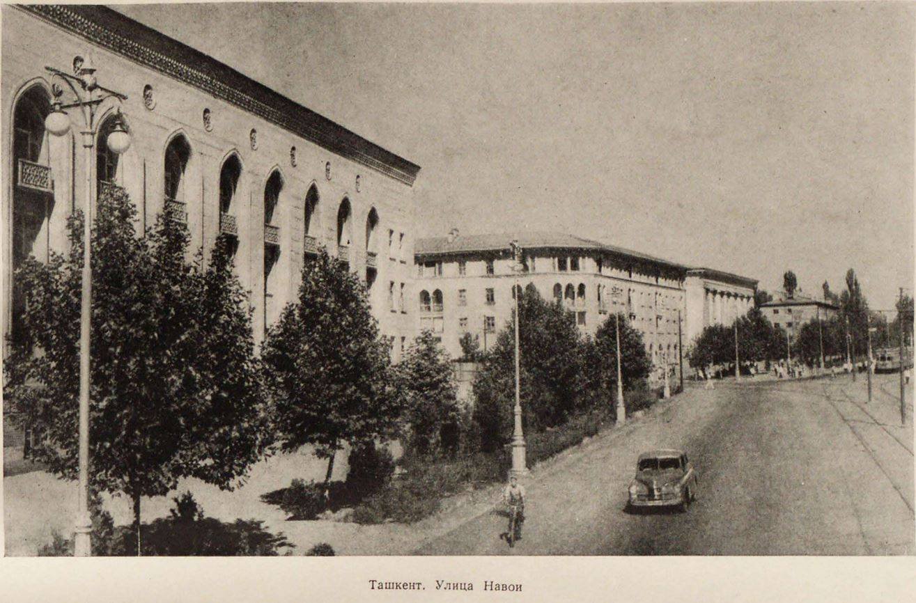 Особенно крупные градостроительные работы проведены в столице Узбекистана — Ташкенте. Этот город состоял раньше из двух частей — «старой», хаотически застроенной, с кривыми закоулками, лишенными зелени, и «новой» — с радиальной сеткой улиц, прямыми магистралями и относительно лучшим благоустройством. Одной из основных задач реконструкции Ташкента было уничтожение такого различия между обеими его частями. В городе были пробиты новые улицы — имени Навои, Шота Руставели, Кагановича, Хамзы и другие, а также созданы площади — имени Ленина, Комсомольская, Беш-Агаческая. Застраивались они 3—4-этажными жилыми и общественными зданиями, причем одновременно проводилось полное благоустройство и озеленение застроенных территорий. В результате больших градостроительных работ Ташкент совершенно преобразился, став крупнейшим промышленным, культурным и научным центром не только Узбекистана, но и всей Средней Азии.