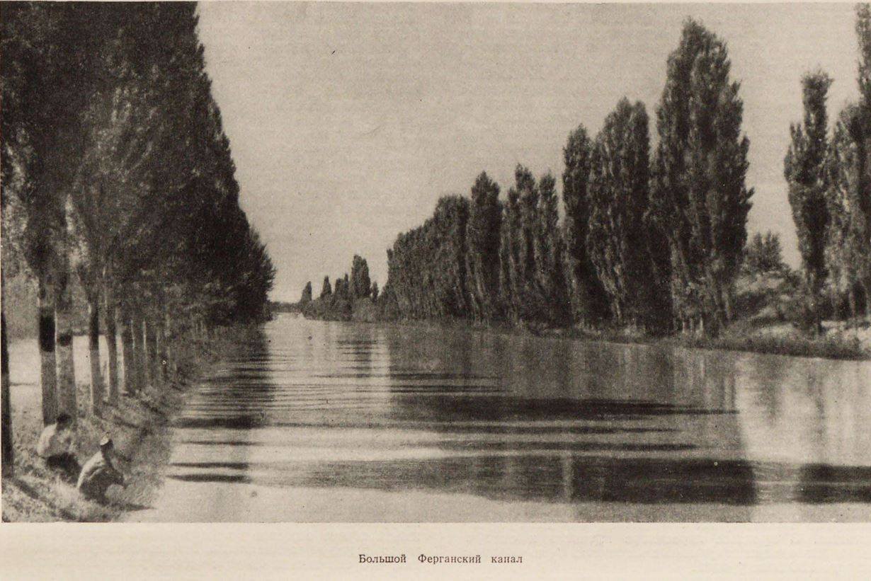 В предвоенные и военные годы колхозное крестьянство Узбекистана с огромным энтузиазмом и в кратчайшие сроки провело строительство огромного количества ирригационных систем, в том числе таких, как Большой Ферганский канал, Северный и Южный ферганские и ташкентские каналы, Катта-курганское водохранилище, Фархадская ГЭС и др. Архитекторы Узбекистана — М. Булатов, М. Мендикулов, В. Дмитриев, Л. Караш, Ф. Салатдинов, В. Волчек, А. Сидоров, Н. Колбин, Л. Бойченко и другие — наравне с лучшими ирригаторами, гидротехниками и колхозным крестьянством принимали активное участие в народных стройках и впервые разрешали проблемы архитектуры ирригационных сооружений Узбекистана. Они создали сооружения, отвечающие не только всем требованиям гидротехники; средствами архитектуры и скульптуры в этих сооружениях отображен подвиг народа и его героический труд. Хорошо проведено также озеленение новостроек.