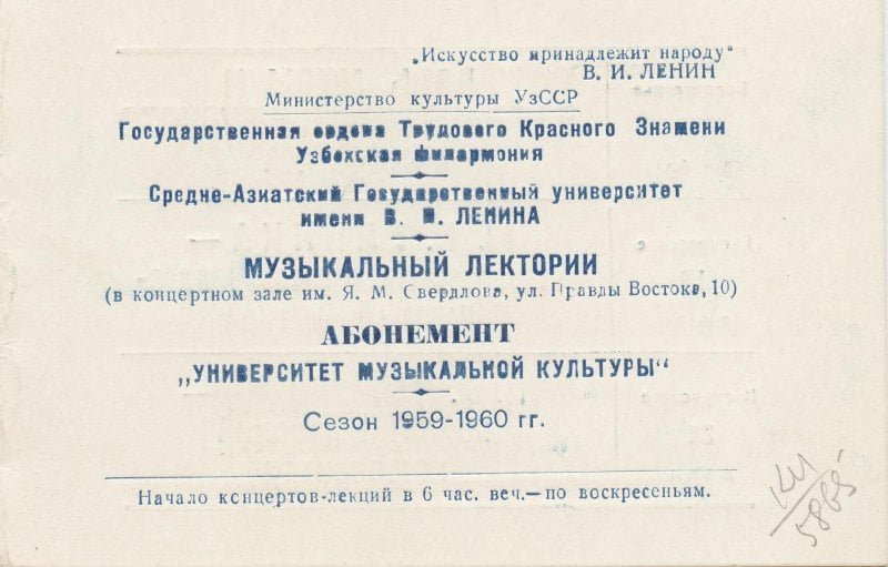 Абонемент Университета музыкальной культуры, 1959 год Искусство