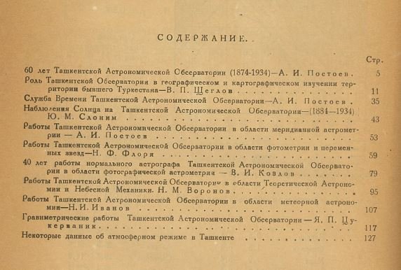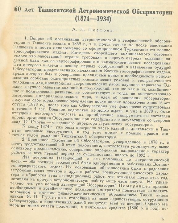 Труды Ташкентской астрономической обсерватории, 1935 год История