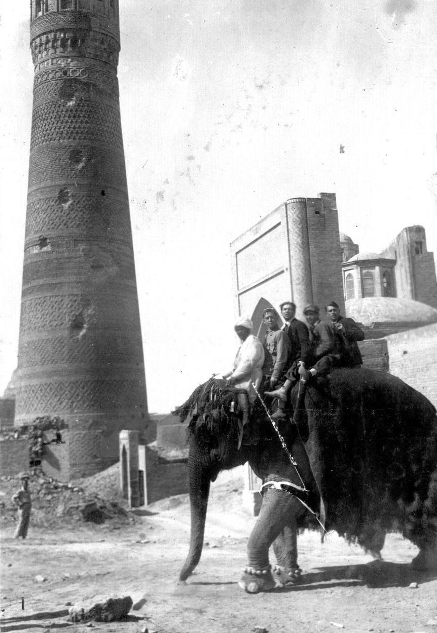 В личном зоопарке Эмира было несколько слонов. Они были привезены из Индии и Афганистана в качестве подарков. Но во время штурма и осады Бухары многие погибли, а эта самка осталась жива.